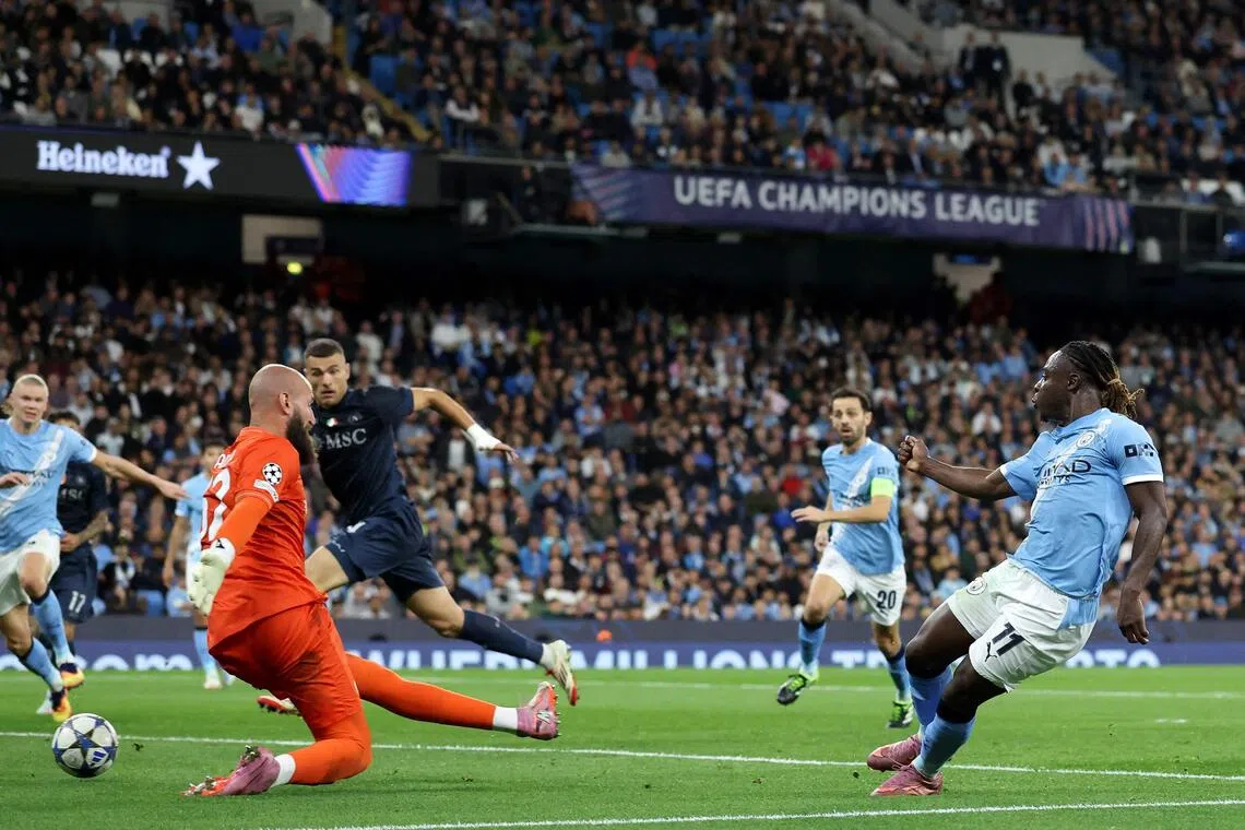 MANCHESTER, England - Manchester City’s prolific striker Erling Haaland bagged a record-breaking goal as Pep Guardiola’s side kicked off their Champions League campaign with a dominant 2-0 victory over 10-man Napoli on Sept 18.
