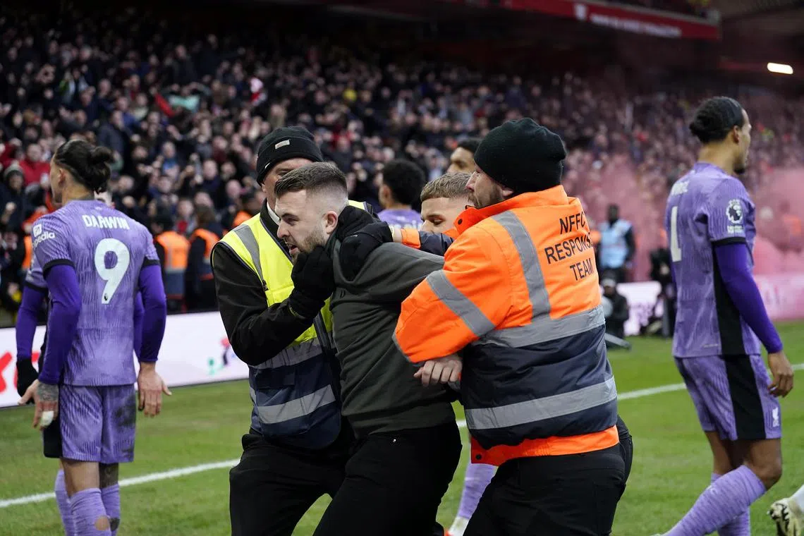 A spectator is arrested after Liverpool’s Darwin Nunez scores the late winner.