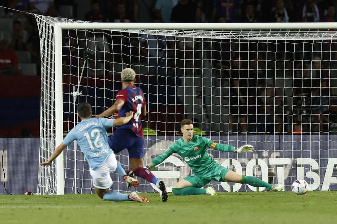 Barcelona's Robert Lewandowski scoring their first goal against Celta Vigo on Sept 23.