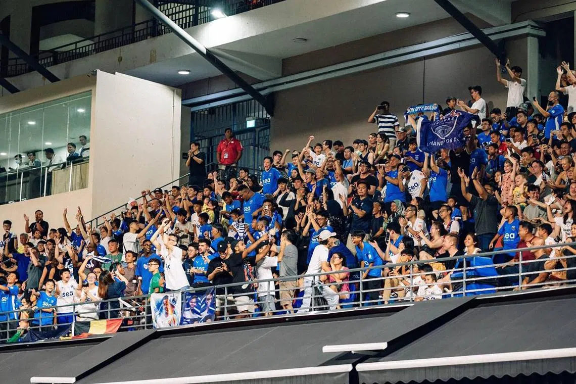 In a recent match at Jurong East Stadium, an almost-full crowd attended. Pictured are the Lion City Sailors’ fans.