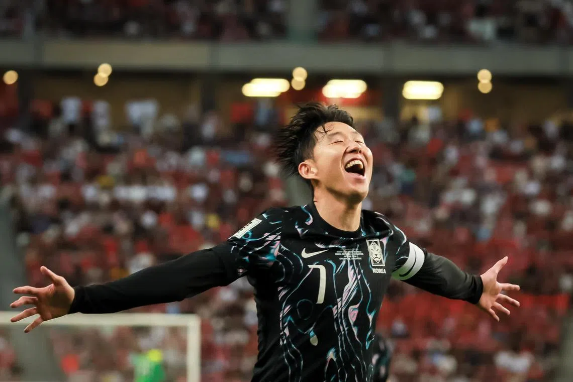 South Korea’s Son Heung-min celebrating after scoring a goal against Singapore at the National Stadium on June 6.