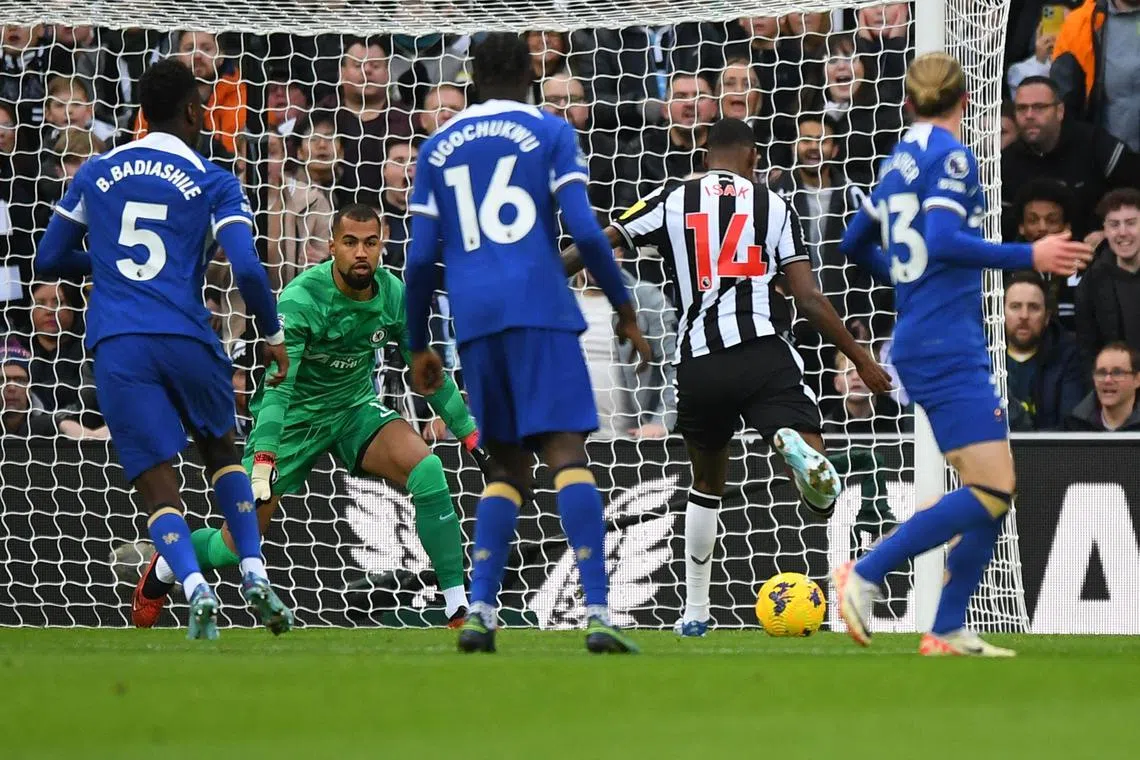 Newcastle United’s Alexander Isak scores the opening goal against Chelsea at St James’ Park.