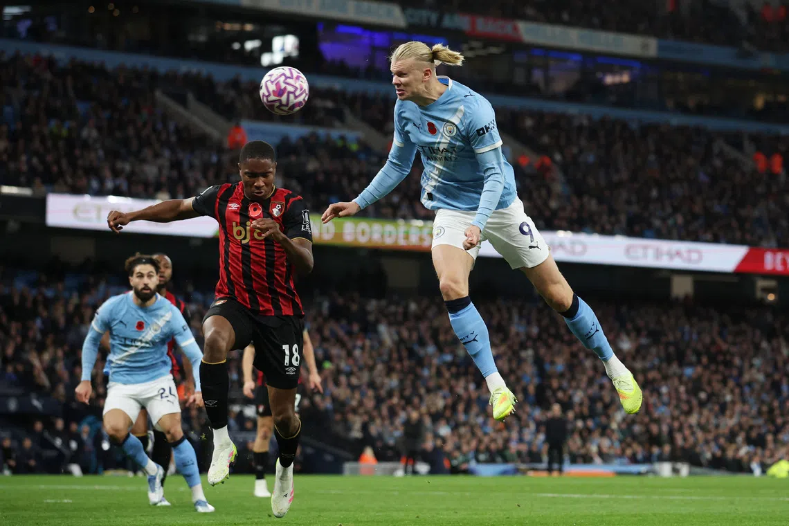 Manchester City’s Erling Haaland in action with Bournemouth’s Bafode Diakite.