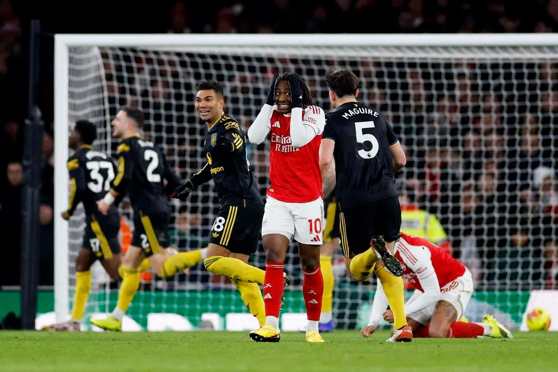 It looked as though Arsenal had got out of jail and might even snatch a win but United's belief was unwavering as Cunha delivered a gift to City and Villa. REUTERS
