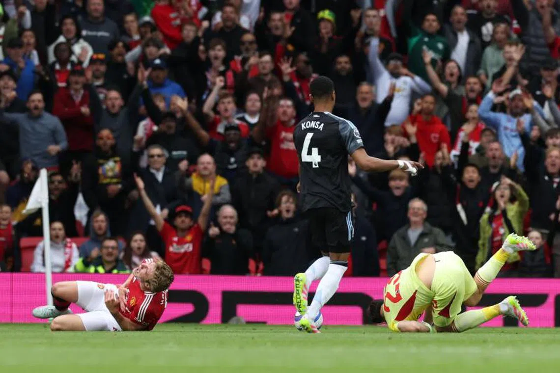 Villa’s hopes were dented when goalkeeper Emi Martinez was sent off just before half-time for bringing down Rasmus Hojlund outside his box.