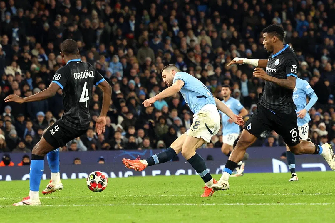 MANCHESTER, England - Manchester City kept their Champions League campaign alive by beating Belgian side Club Brugge 3-1 in a nervy must-win match on Jan 29 thanks to goals from Mateo Kovacic and substitute Savinho, and a Brugge own goal.