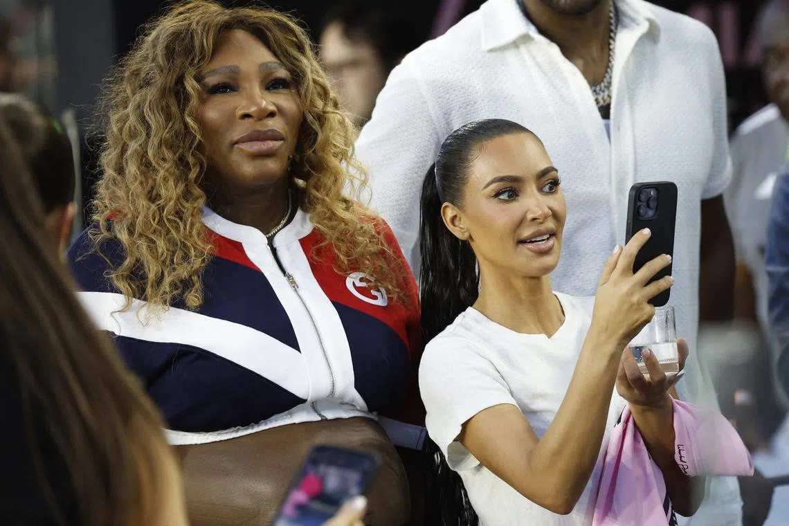 Former tennis player Serena Williams with Kim Kardashian on the stands during the match.