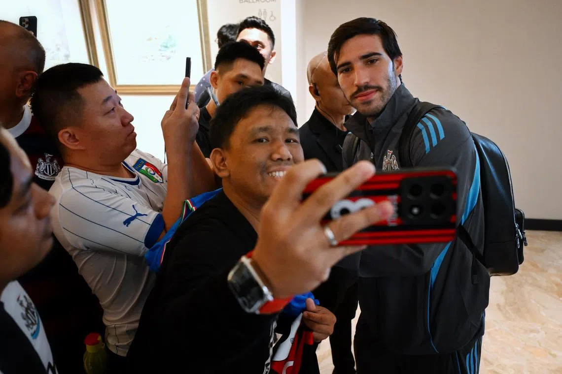 Newcastle midfielder Sandro Tonali was one of those who took time to interact with Magpies supporters inside their Pan Pacific Singapore base upon the squad’s arrival on July 25.