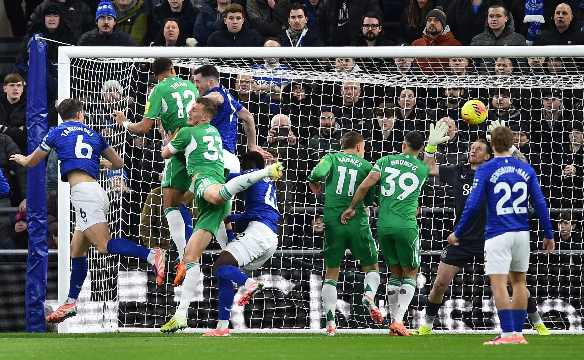Everton’s Tim Iroegbunam, in the side for the suspended Idrissa Gueye, misjudged a ball on the right and Anthony Elanga played in Woltemade, whose expert chip over Pickford made it 3-0.