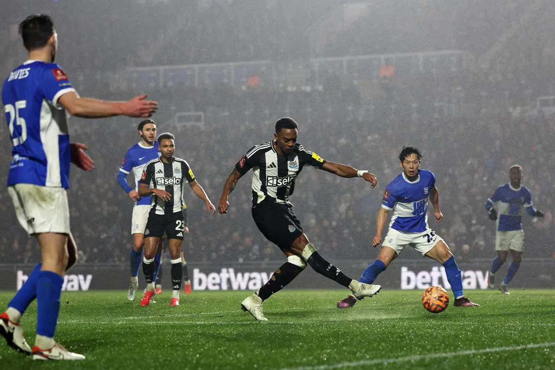 Newcastle United’s Joe Willock scoring their third goal against Birmingham City.