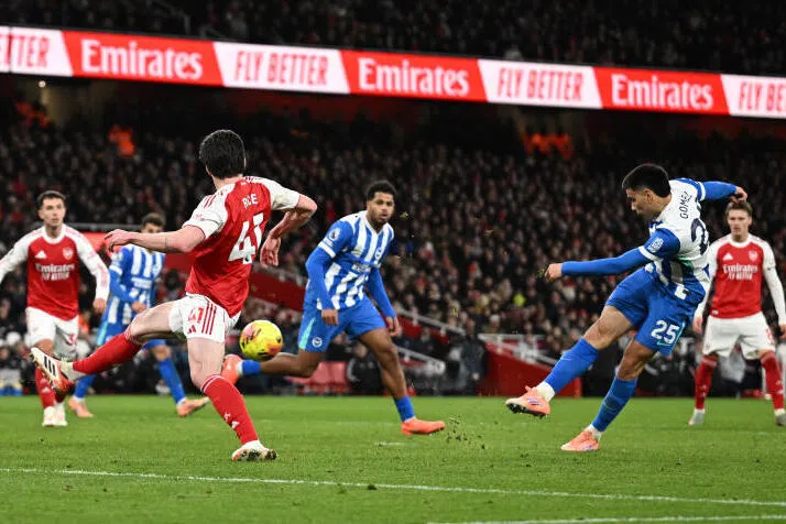 Brighton & Hove Albion's Diego Gomez scores their first goal but they still lost 2-1 at Arsenal.