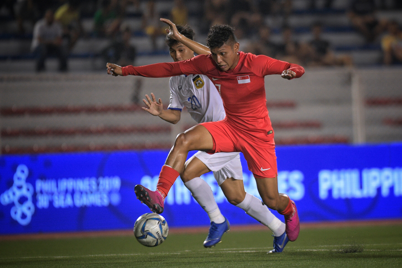 Singapore's Zulqarnaen Suzliman in action during the SEA Games against Laos in Manila on Nov 26, 2019. Zulqarnaen is among the six footballers who broke the team's curfew at the SEA Games.