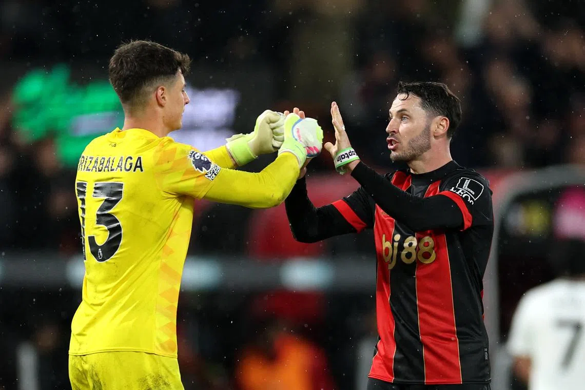 Bournemouth’s Kepa Arrizabalaga and Adam Smith celebrate after the match.