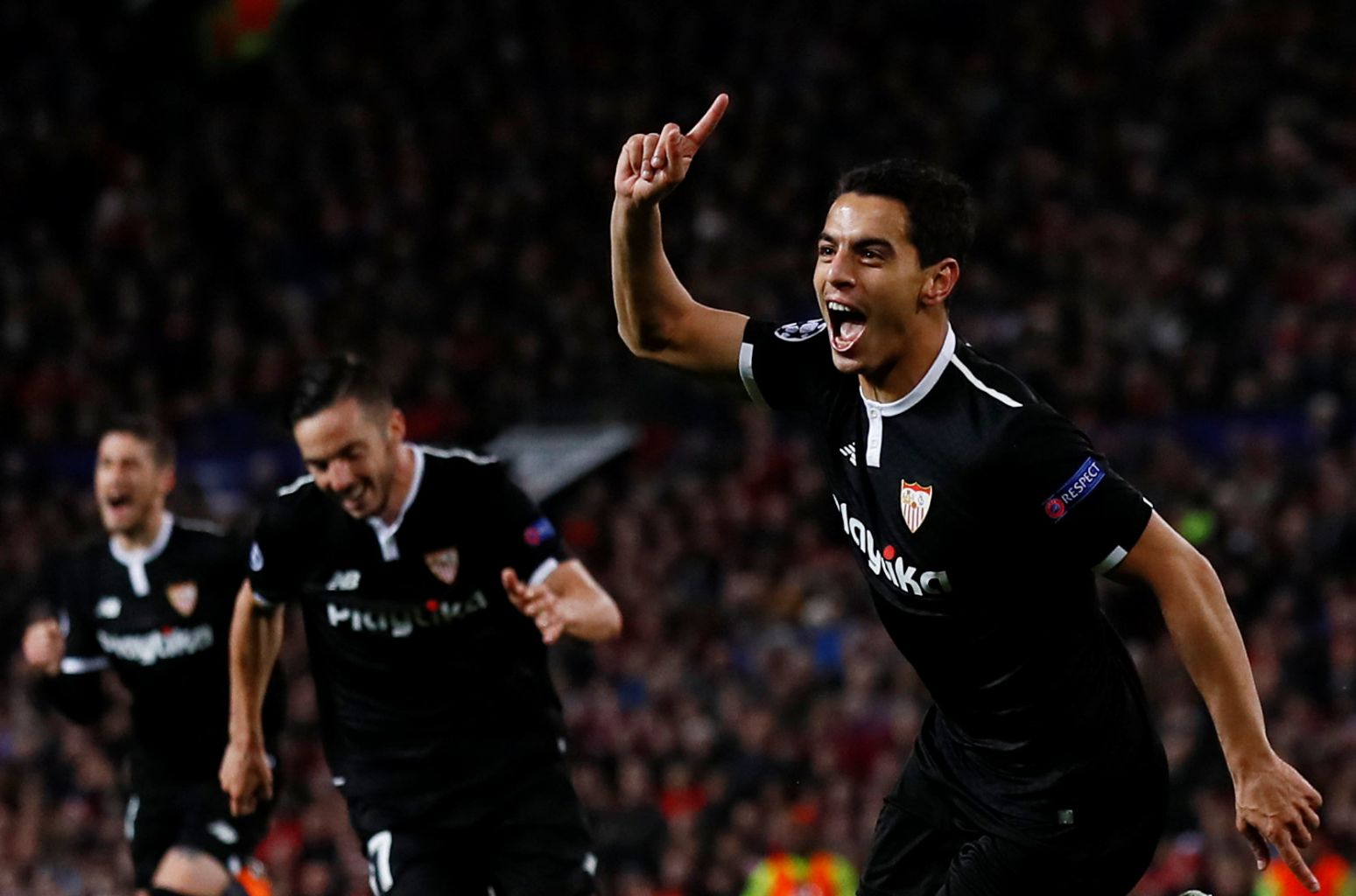 Sevilla’s Wissam Ben Yedder celebrates scoring a goal.