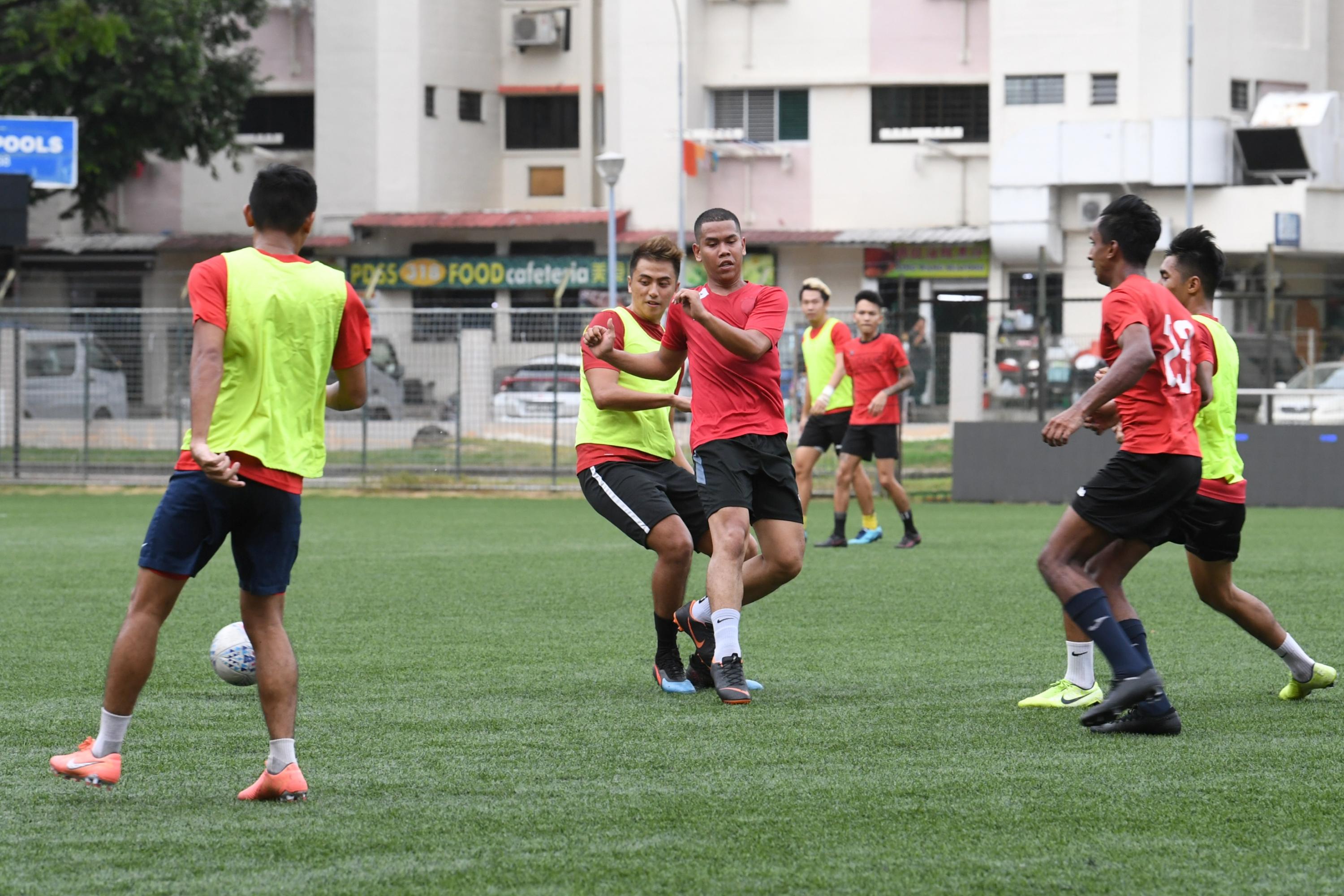 Warriors FC players during a training session at Jurong Stadium in January 2020.