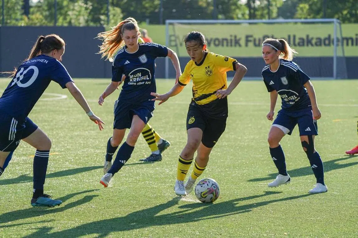 Danelle Tan (in yellow), in action for BVB Frauen against SC Borchen in a pre-season friendly.