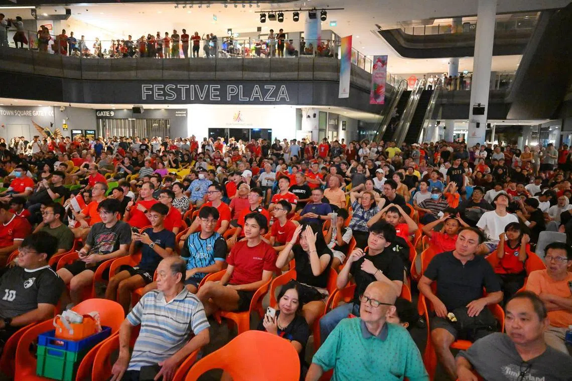 Singapore football fans after the team conceded the second goal during a live broadcast of the Asean Championship semi-final at Our Tampines Hub on Dec 26.