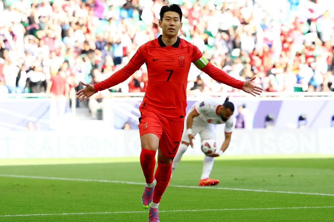 South Korea’s Son Heung-Min celebrates scoring their first goal against Jordan.