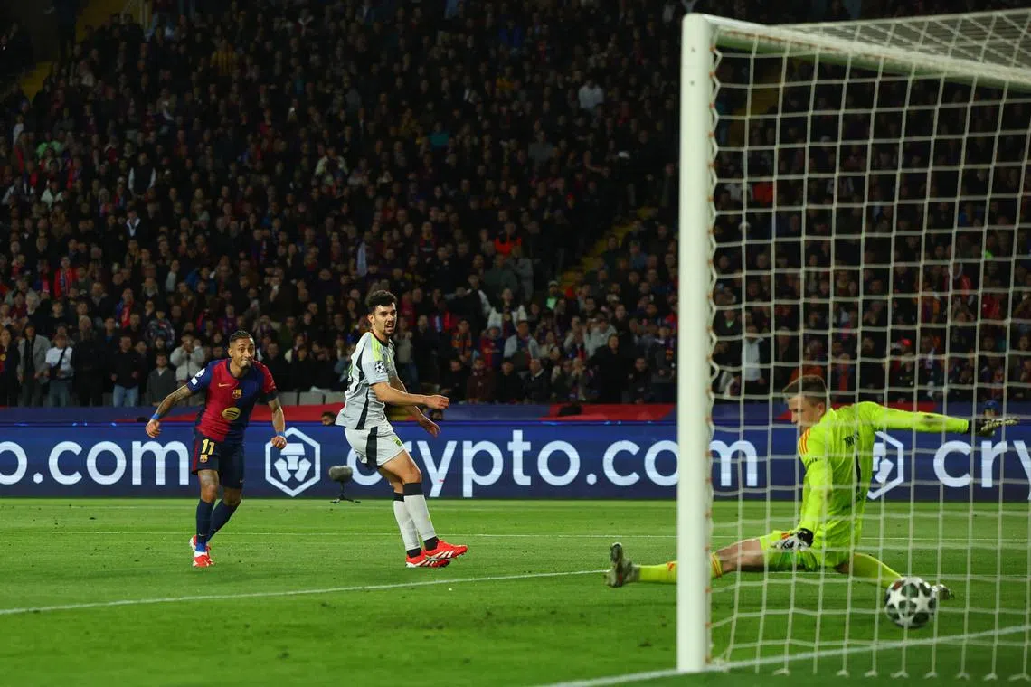 BARCELONA - Raphinha scored twice and Lamine Yamal netted with a stunning strike in a rampant first half as Barcelona dismantled Benfica 3-1 in their Champions League last-16 second leg on March 11, advancing to the quarter-finals with a 4-1 aggregate victory.