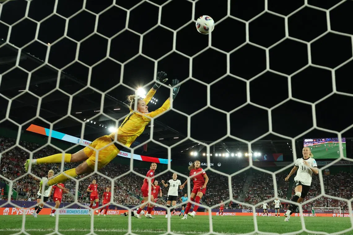 Germany on July 4 battled to a 2-0 win over tournament debutantes Poland in their Group C opener, with forward Jule Brand scoring one goal and setting up another in St Gallen. But they suffered a blow when captain Giulia Gwinn left the field injured.