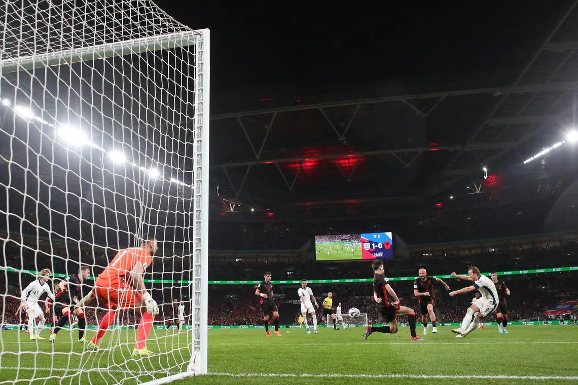 England’s Harry Kane scores their second goal in the 77th minute.