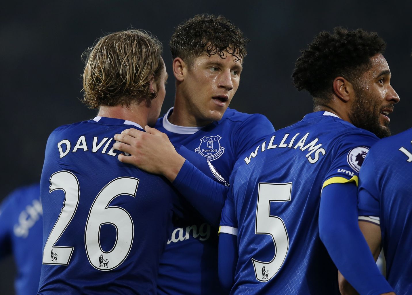 Everton's Ross Barkley celebrates scoring a goal with team mates.