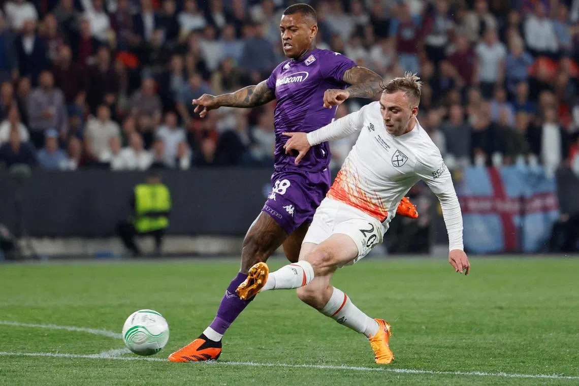 The fans of both teams made their presence felt in a noisy atmosphere. The referee had to stop play in the first half after West Ham fans threw cups at Fiorentina’s Cristiano Biraghi, hitting the defender on the head and drawing blood.