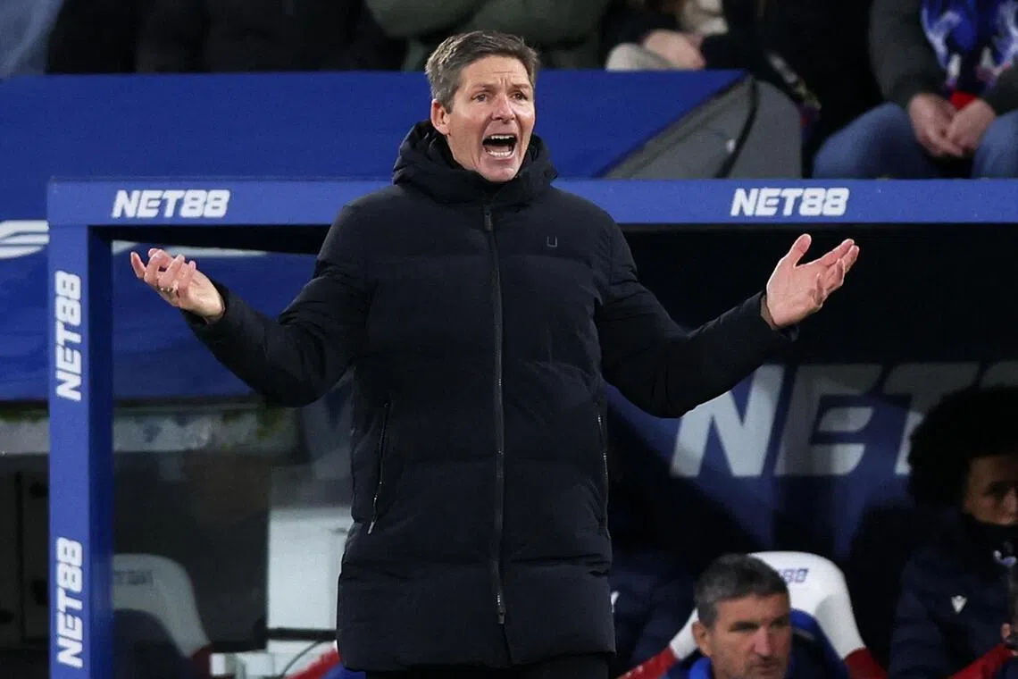 Crystal Palace manager Oliver Glasner gesturing during their match against Fulham on Jan 1.
