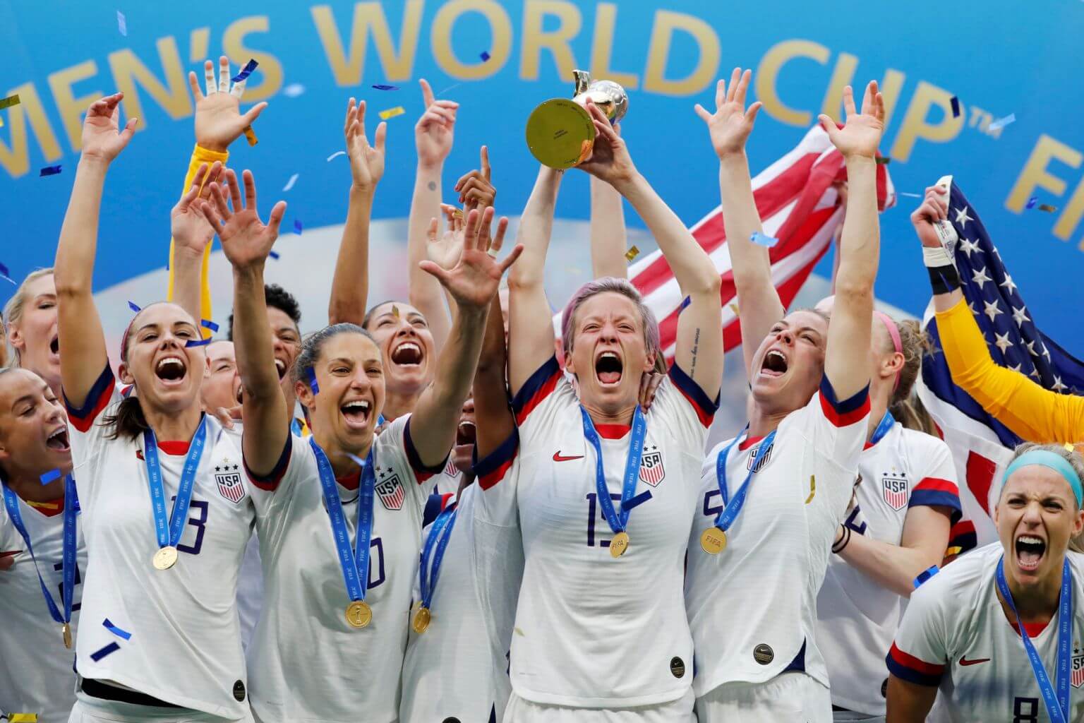 The US women's football team celebrate winning the Women's World Cup for the fourth time.