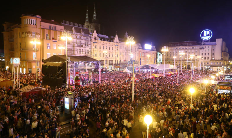 Croatia fans in Zagreb celebrate after Croatia beat England in the World Cup semi-final match on July 11, 2018.