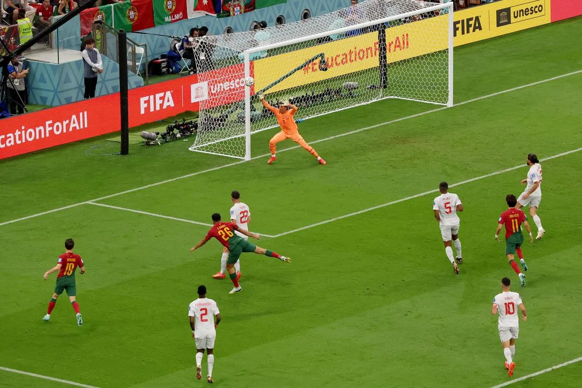 Goncalo Ramos scores their first goal against Switzerland on Tuesday.