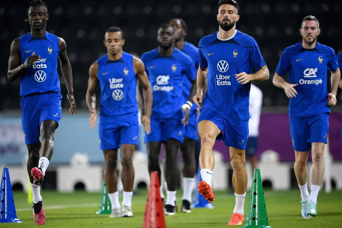 France’s national team at a training session at the Al Sadd SC training centre in Doha on Dec 16, 2022.