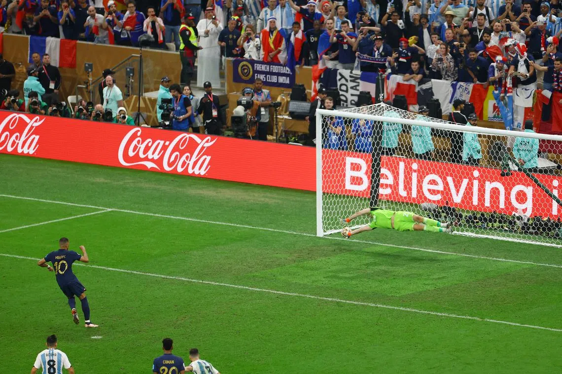 Nicolas Otamendi brings down Randal Kolo Muani in the 80th minute. A penalty is awarded which sees Mbappe power the ball past Argentina goalkeeper Emiliano Martinez.