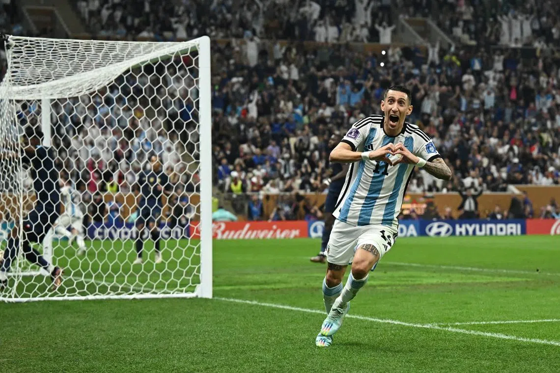 Argentina’s Angel di Maria celebrates scoring their second goal.
