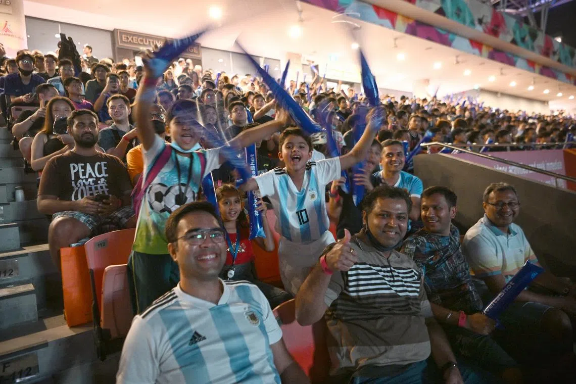 While fans decked out in Argentina’s blue-and-white colours were the majority at Tampines, they gave the venue a uniquely Singaporean feel as the Kallang wave rippled though the crowd at the stadium.