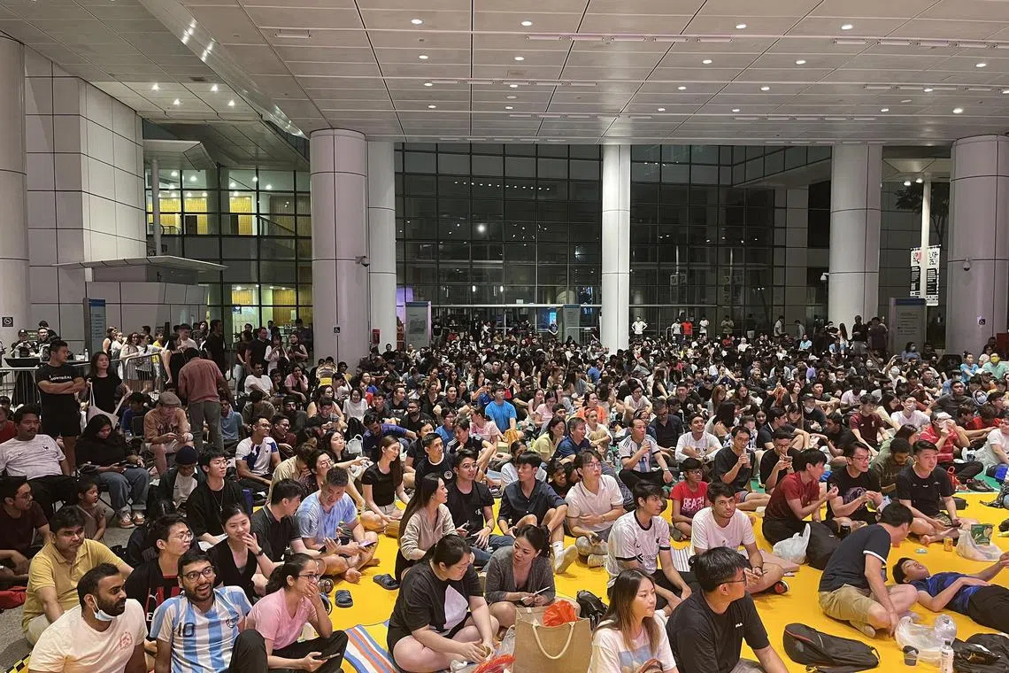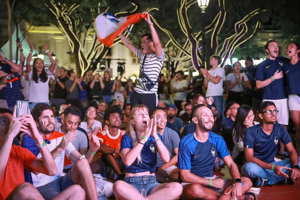 Over at the Sports Hub, Taiwanese singer Jay Chou was not the only headline act at the Kallang venue with another well-attended event at the OCBC Square, as 750 fans decked out in the colours of Argentina and France packed into two viewing zones, with some leaning on barricades as they craned their necks for a better view of the action.