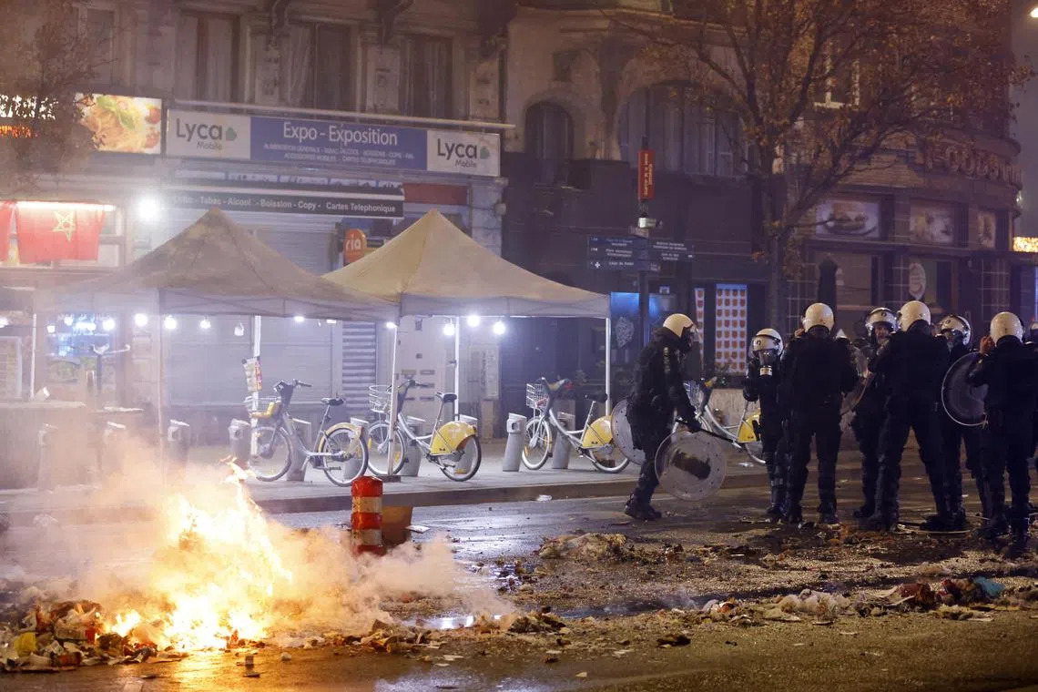 In Belgium, around 100 fans, some wrapped in Moroccan flags, briefly clashed with police on Wednesday evening in central Brussels, according to Reuters reporters on the scene. REUTERS