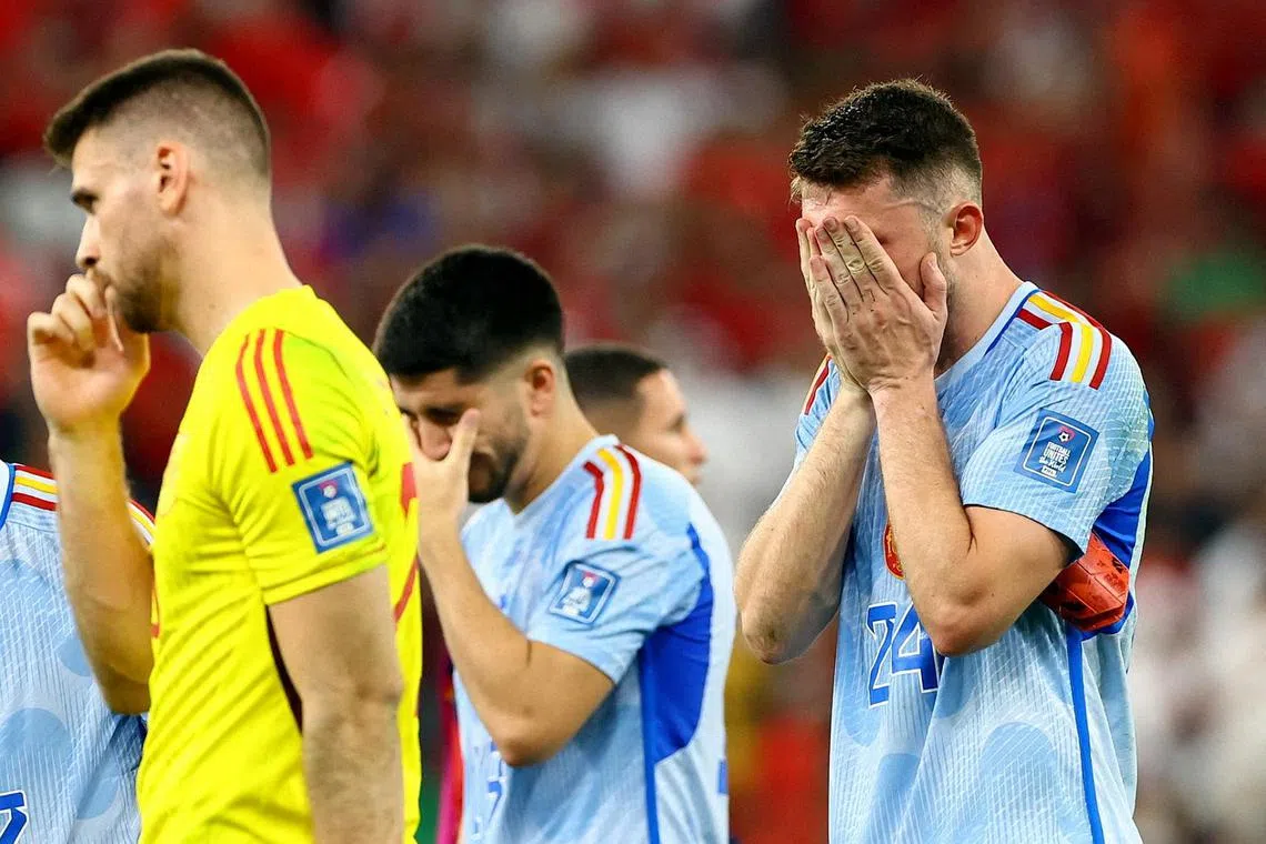 Spain’s players reacting following their defeat to Morocco at the World Cup on Dec 6, 2022.