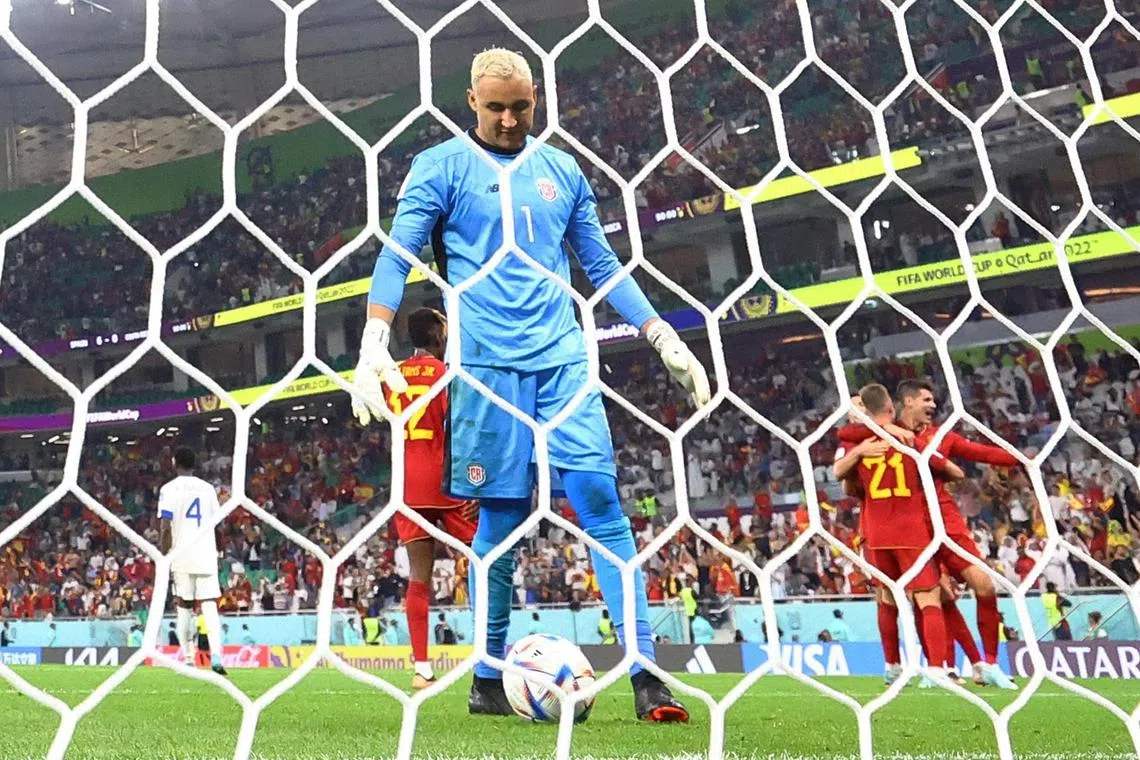 Costa Rica’s Keylor Navas looks dejected after Spain’s Alvaro Morata scores their seventh goal.