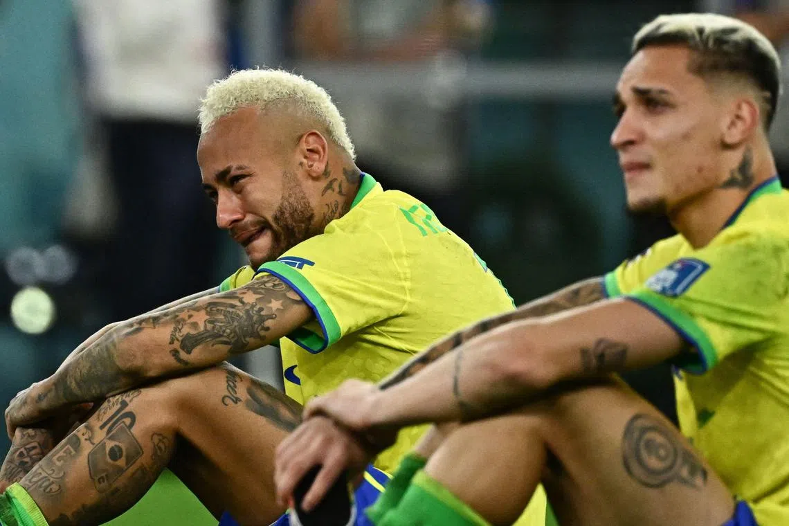 Brazil’s Neymar and Antony cry after losing in the penalty shoot-out.
