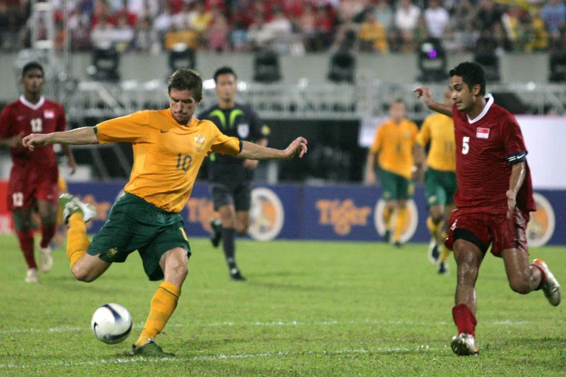 Australia’s Harry Kewell goes on to score the second goal for Australia during a 3-0 win over Singapore in what was dubbed the Kallang Stadium Farewell Match in 2007.