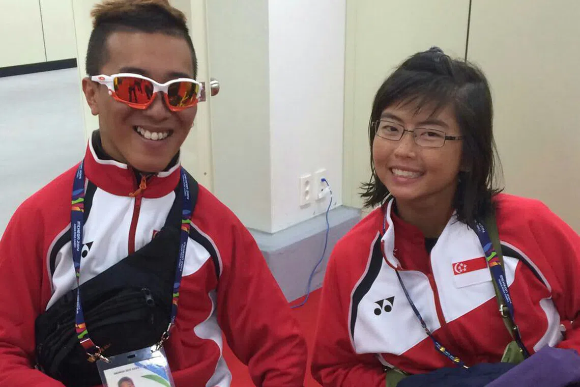 Sailors Jovin Tan (left) and Yap Qian Yin won Singapore's first-ever gold medal at the Asian Para Games in Incheon on Oct 22, 2014. They were champions in the two-person keelboat (access dinghy 303 wide) event.
