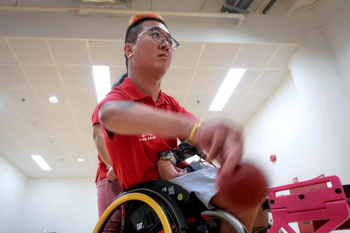 Former Paralympic sailor Jovin Tan in boccia training at OCBC Arena on Sept 13.