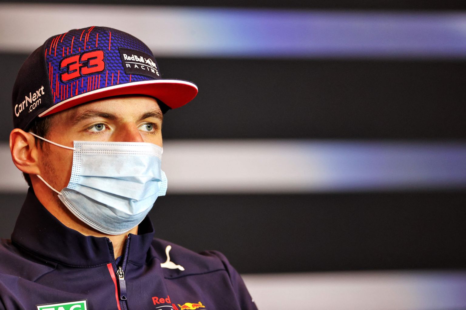 Verstappen attends a press conference at the Imola race track in Italy.