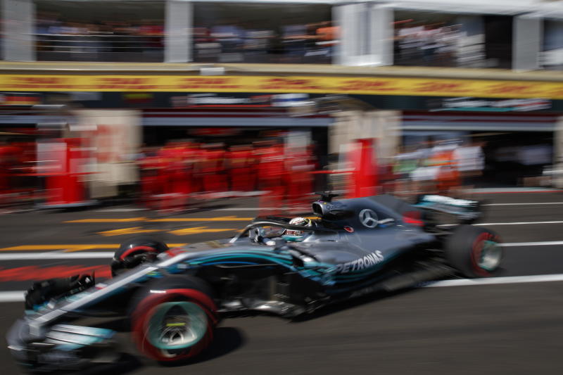 British Formula One driver Lewis Hamilton of Mercedes AMG GP in action during the second practice session at Paul Ricard circuit in Le Castellet, France, on June 22, 2018.