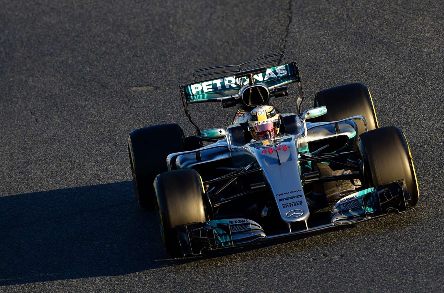 Mercedes driver Lewis Hamilton test-driving at the Circuit de Catalunya, near Barcelona, on March 1, 2017.