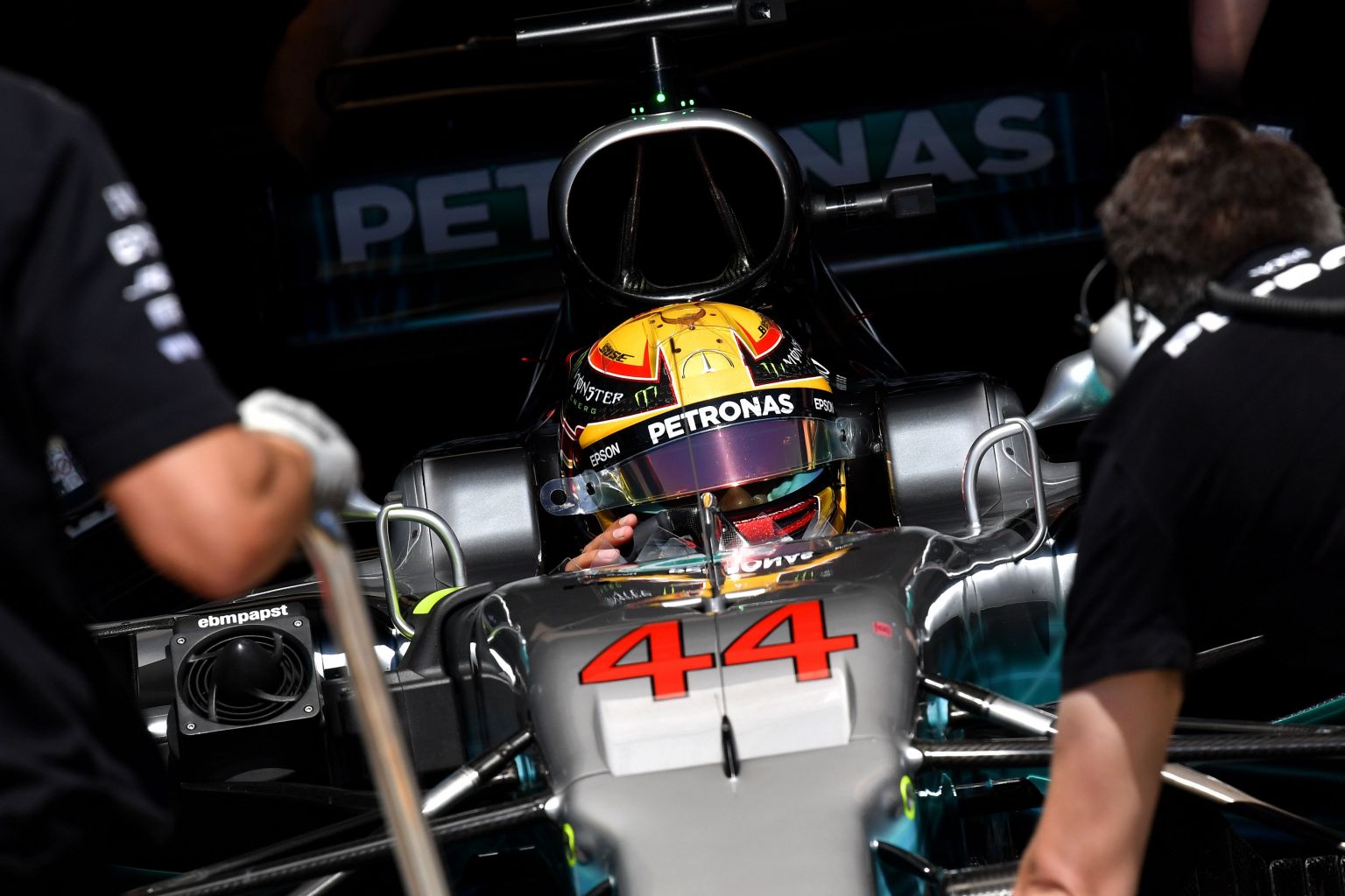 Hamilton prepares to take part in the qualifying session.