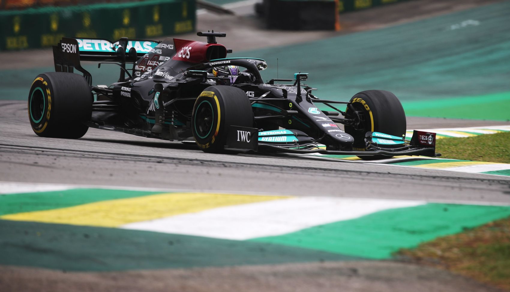 Mercedes' Lewis Hamilton in action during practice ahead of the Brazilian grand prix.
