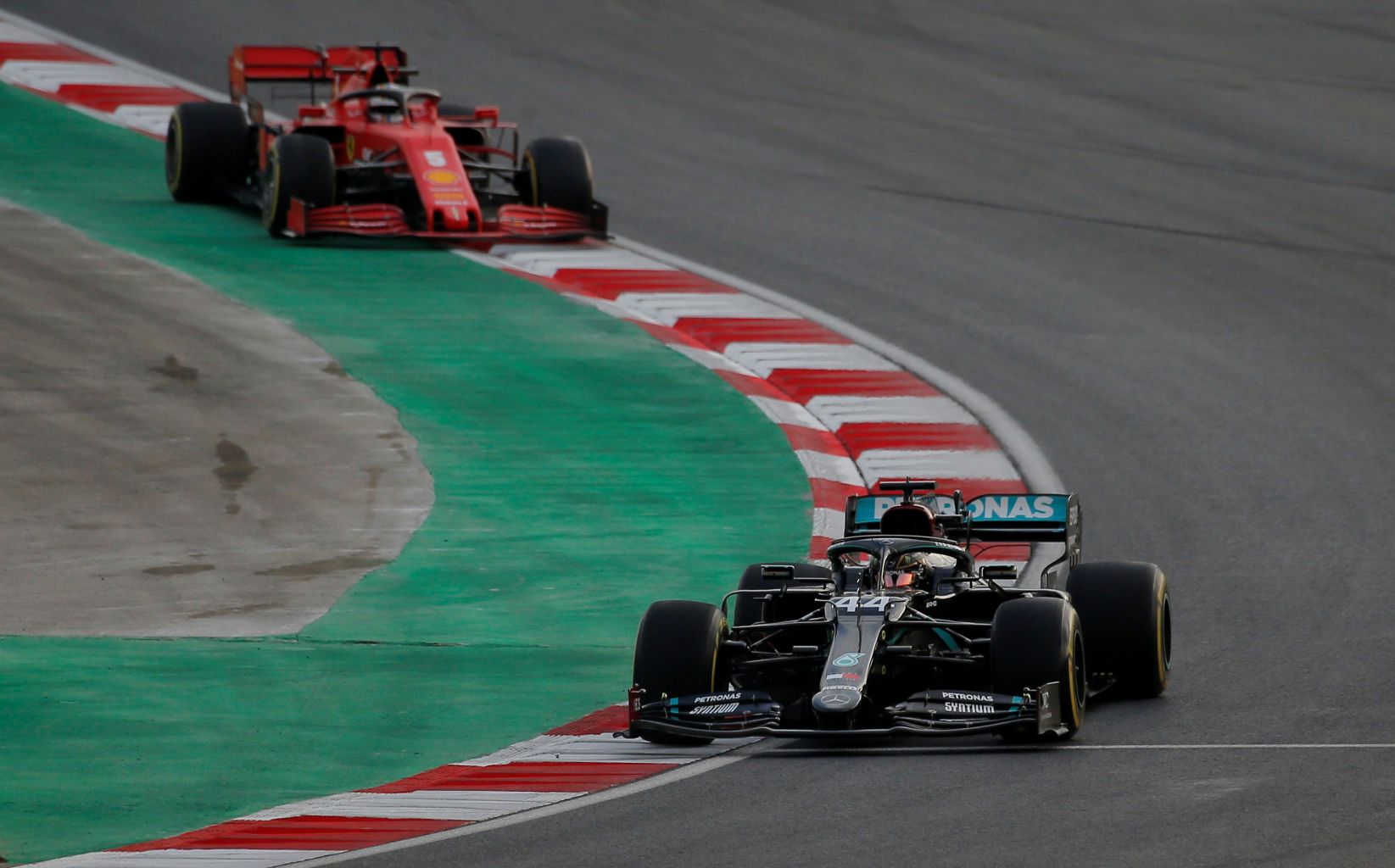 Hamilton and Ferrari's Sebastian Vettel during practice.
