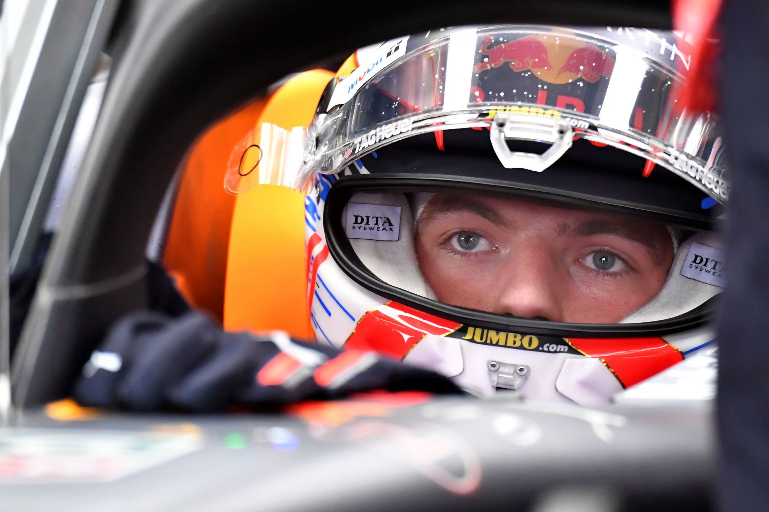 Red Bull's Verstappen waits in his car before the second practice session of the Hungarian grand prix.